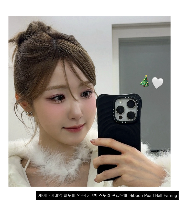 Ribbon Pearl Ball Earring